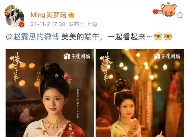 在宣传赵露思的时候,奚梦瑶使用了官方的剧照,文案是“美丽的端午节,一起看”。