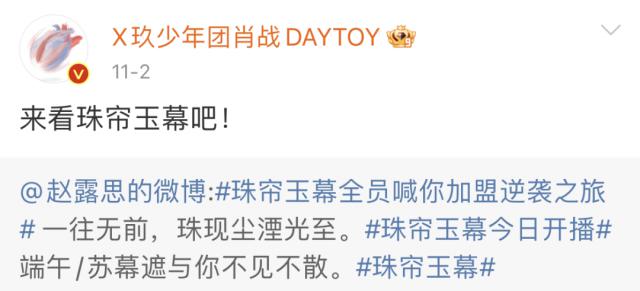 肖战直接分享赵露思的动态,给出一句“来看珠帘玉幕”!