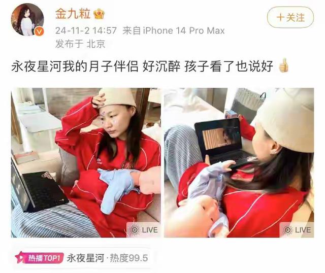 金靖直接发了一张自己坐月子看《永夜星河》的照片。