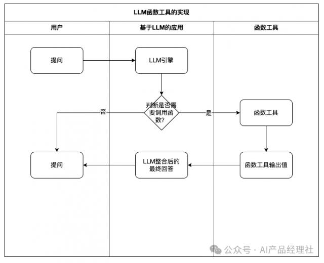这里主要介绍一下,Kimi 国内其它自定义函数工具, LLM 提供的函数工具基本相同。整个过程如下