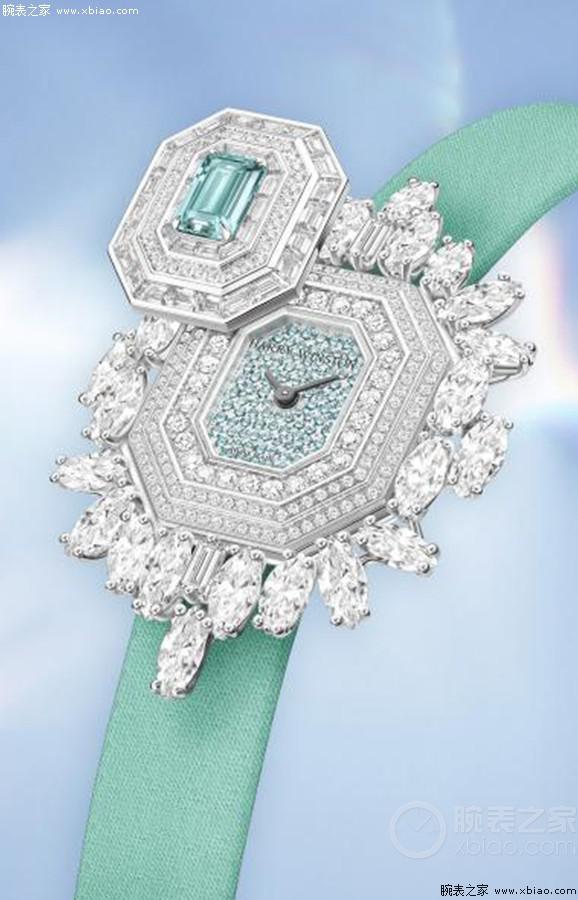 2021 海瑞温斯顿于2008年推出 4 一款全新的手表,由蓝宝石和帕拉伊巴色碧玺制成。首先,映入眼帘的美丽表壳完全被晶石覆盖,呈现出一种隐藏的奢华气质。