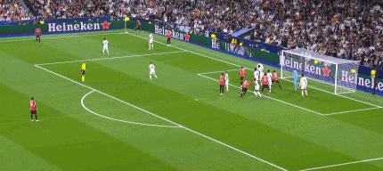 第 81 在几分钟内,替补出场的塞巴略斯肋部将球吊入雷区,迈尼昂进攻扑球,吕迪格迎球进网,但 VAR 介入判断吕迪格前插时已经越位,进球被吹无效。第 87 一分钟,特奥左路横传,奇克抢点推射,如果不是卢宁的又一次扑救,比分也会被改写。最后皇马 1:3 告负,曝光一个不大不小的冷门,继我国德比之后 0:4 之后主场又输了; 4 皇马已经输掉了欧冠冠军杯。 2 场。