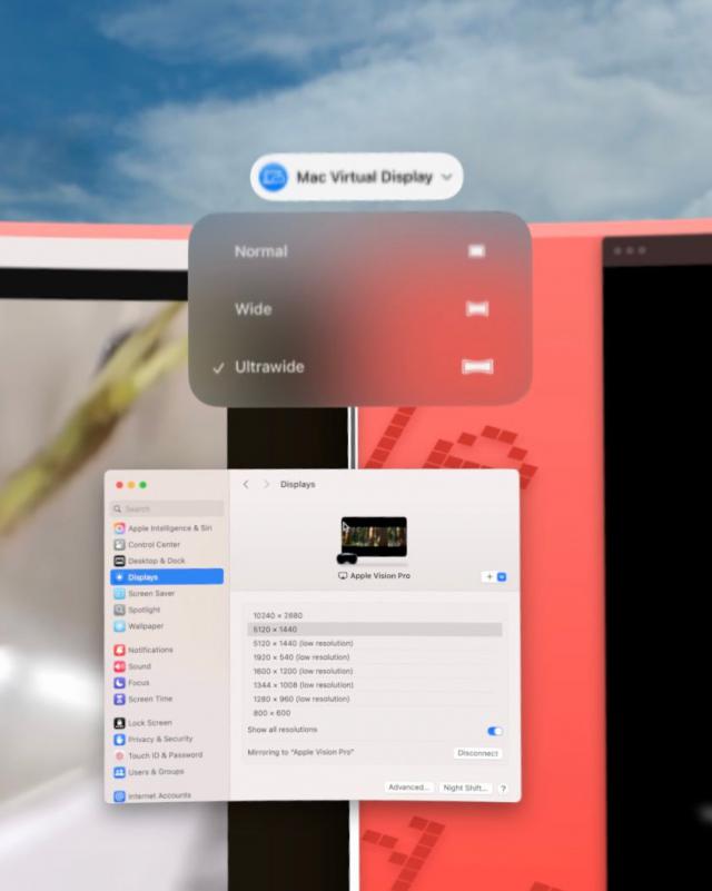 IT 世家 11 月 6 昨天苹果公司(11日) 月 5 日本)面向开发者,推送 visionOS 2.2 Beta 1 预览版,主要是 Mac 虚拟显示屏(Mac Virtual Display)添加了"宽"和"超宽"方式,让用户将 Vision Pro 用作 Mac 外显示屏。