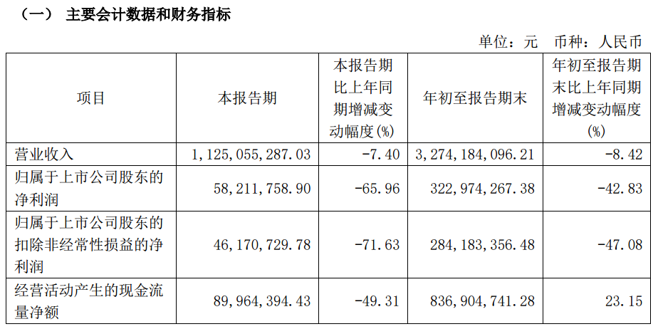 十月三十日,徐升集团发布2024年第三季度报告显示,2024年第三季度营业收入为32.74亿元,同比下降8.42%。;回归母亲的净利润为3.23亿元,比去年同期下降42.83%。