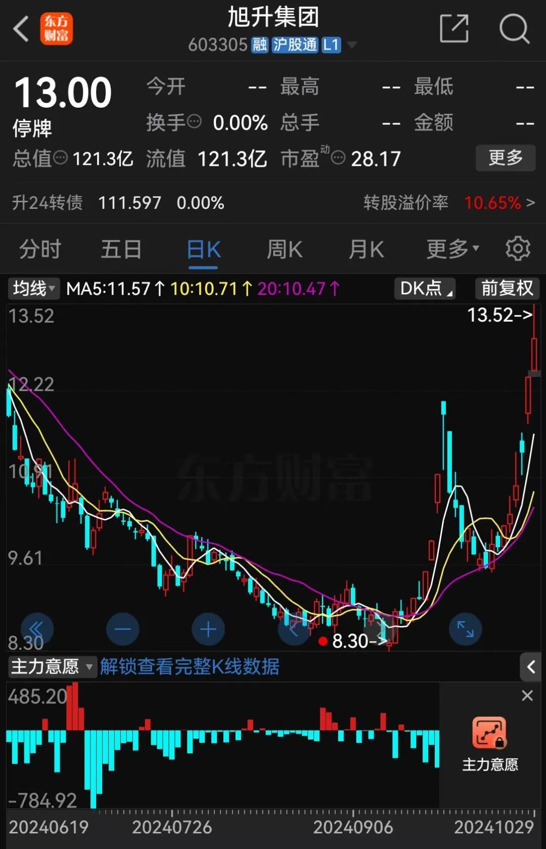 具体而言,旭升集团10月28日收盘,10月25日至10月29日累计涨幅达到20.48%。