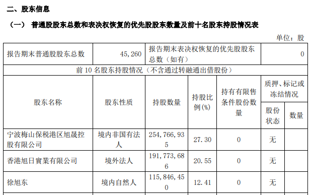 截至2024年第三季度末,徐升集团前三大股东分别为徐升控股、香港徐升实业有限公司、徐旭东,持股比例分别为27.30%。、20.55%、12.41%。