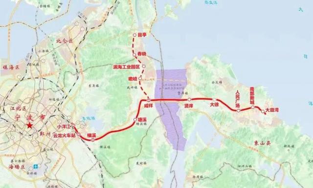 城市铁路象山线连接宁波城区和象山县,项目自行开工。 4、7 小洋江站引出号线换乘站。经云龙、横溪、塘溪、咸祥之后,他们穿越象山港。后经贤、大徐进入象山县设立人民广场站,南部新城站后至线路终点大目湾站,全线约长。 61.45 公里,共设 10 车站。现在,全线 10 所有的车站都已经建成,9 车站实现主体结构封顶,13 通过隧道贯通座山岭。
