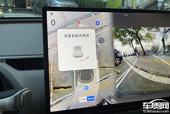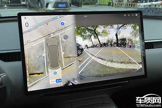 2024 款小鹏 MONA M03 配置 360 全景图像。测量白天光线好的时候,画质显示清晰,晚上画质的清晰度会降低。同时,画面会有一定的畸变。此外,如果物体靠近车辆周围,屏幕左侧会提醒驾驶员进一步保证安全驾驶。