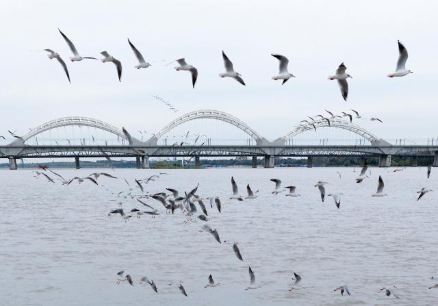 目前,候鸟正在加速南移。在哈尔滨松花江上,仍然有成群的红嘴鸥在寻找食物。在他们南移之前,市民们正在沿着河边欣赏候鸟的聚集。在天气变冷,松花江冻结之前,这些精灵会飞到温暖的越冬场。