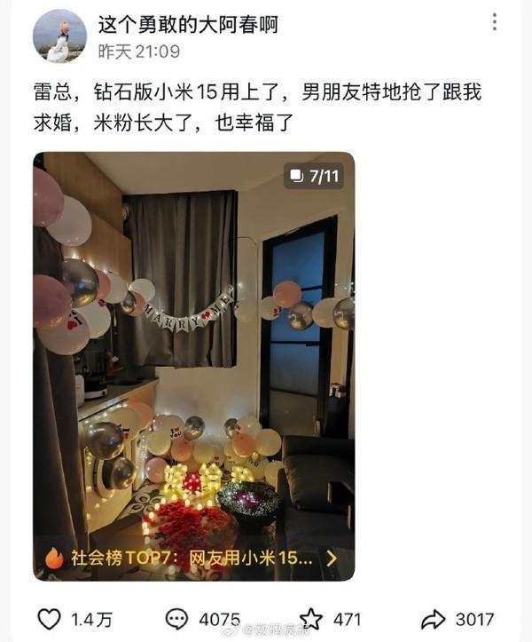 米粉用小米 15 求婚成功的裸钻限量版 雷军亲自送上祝福!