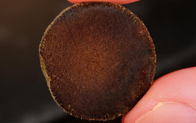 这种橘红色的选择粗部分切片,经过 15 年熟化,表面绒毛密集,清楚可见。