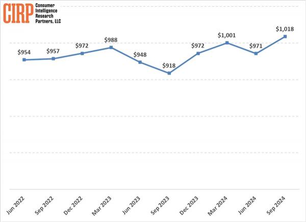 9 月数据显示,iPhone 平均价格已达到 1018 约合人民币近的美元 7400 人民币,而价格上涨的主要原因是消费者对于配置扩展存储 Pro 和 Pro Max 强烈的型号需求。
