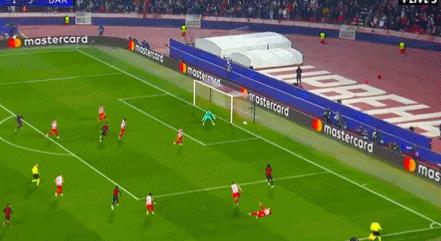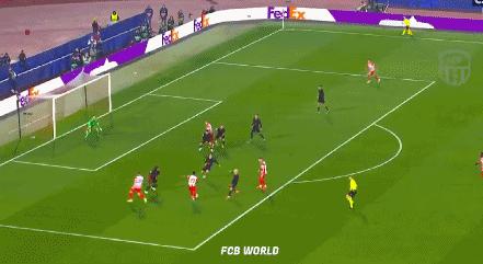红星攻击直传,库巴西造越失败,塞拉斯插入形成单刀,轻挑成功,巴萨成功, 1-1 被扳平!