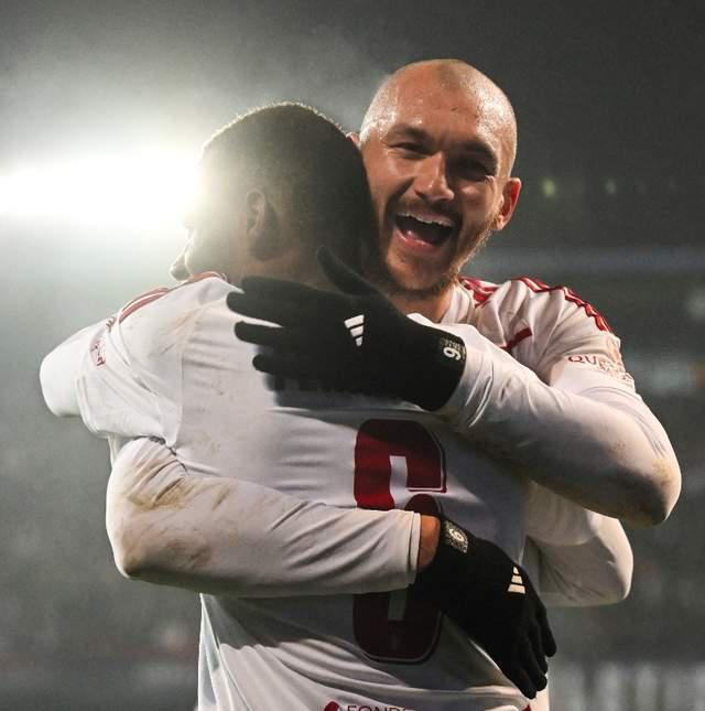这个进球让布雷斯特的整个球队都疯了!埃德米尔森和他的队友滑倒庆祝。他们怎么能在欧冠打进这么精彩的进球呢?