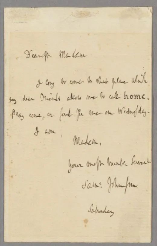 英国诗人萨缪尔·约翰逊在1760年写了一封信,他希望他的妻子周三带他回家。