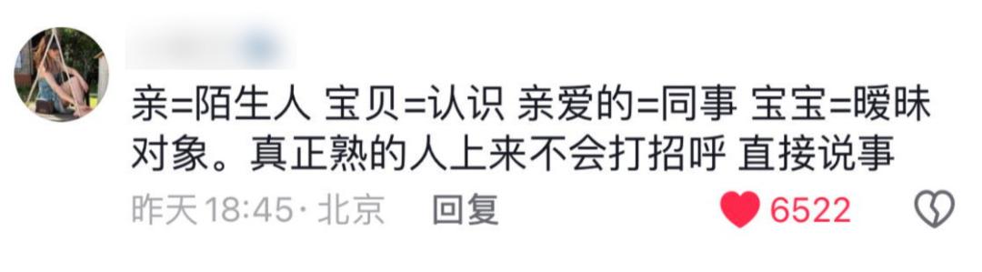 对于不熟悉的人发消息,第一句话不是“你好”,而是“宝子”、“姐妹”、“兄弟”。说完之后,一定要在最后加一个“哈”,表达谦虚友好的语气。OK 有时也是必须的 okkkkk 。