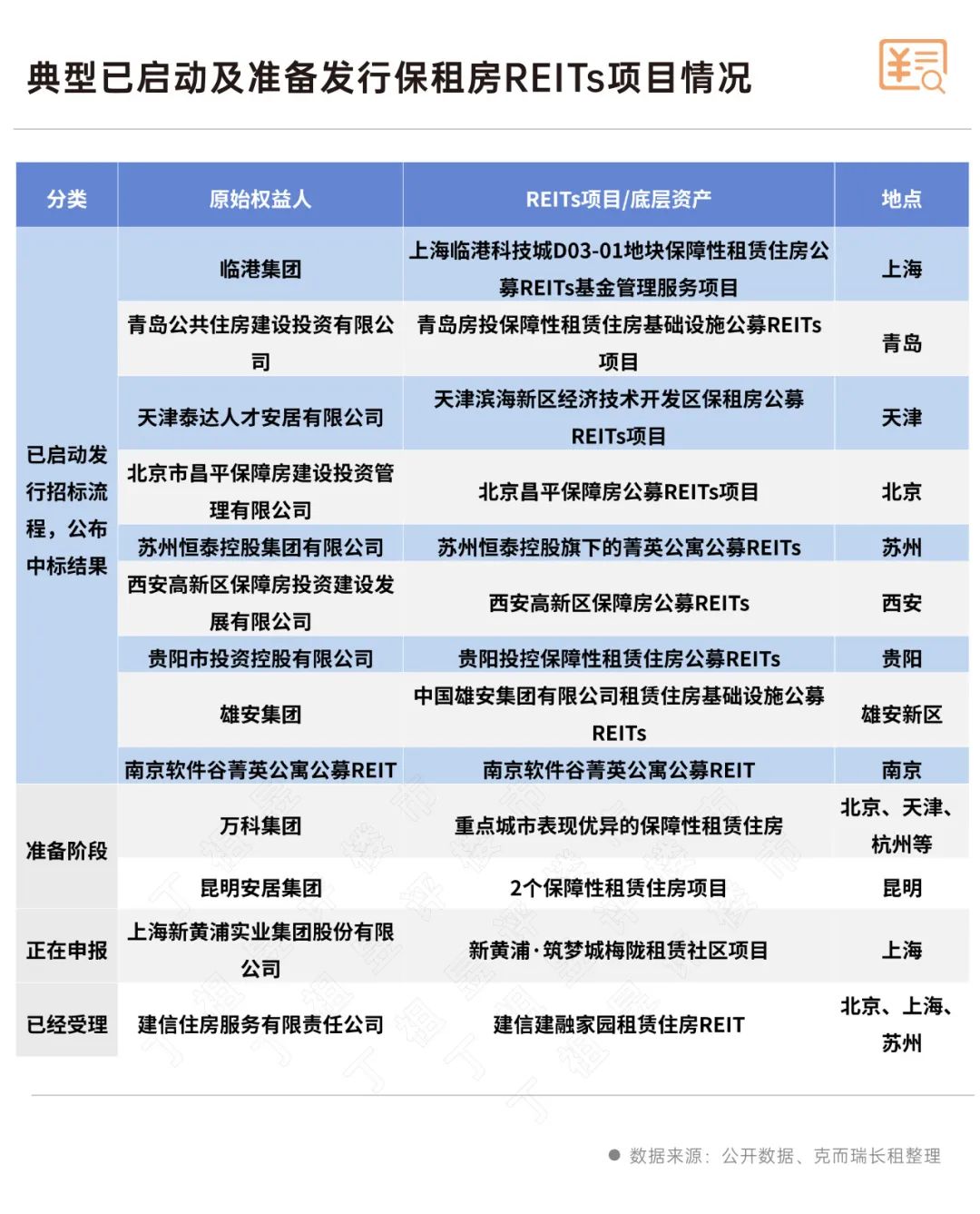 其中,临港集团、天津泰达人才安居等公司已启动招标流程并公布中标结果,万科、昆明安居处于准备阶段,上海新黄浦实业正在申请,建信住房已受理。