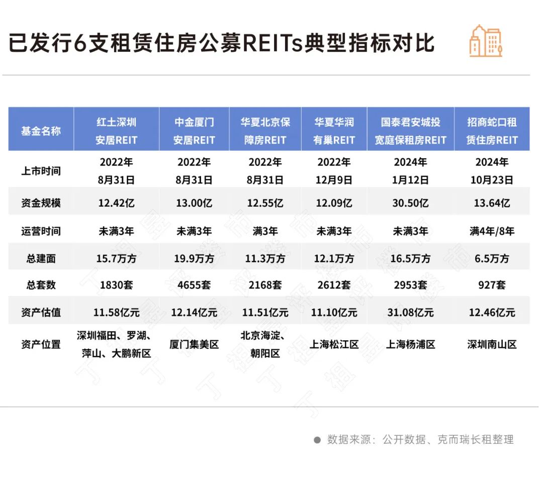 就运行时间而言,招商局蛇口租赁住房REIT最长,全部4年以上,而其他5个中只有华夏北京保障房REIT运营3年,其他4个不到3年。