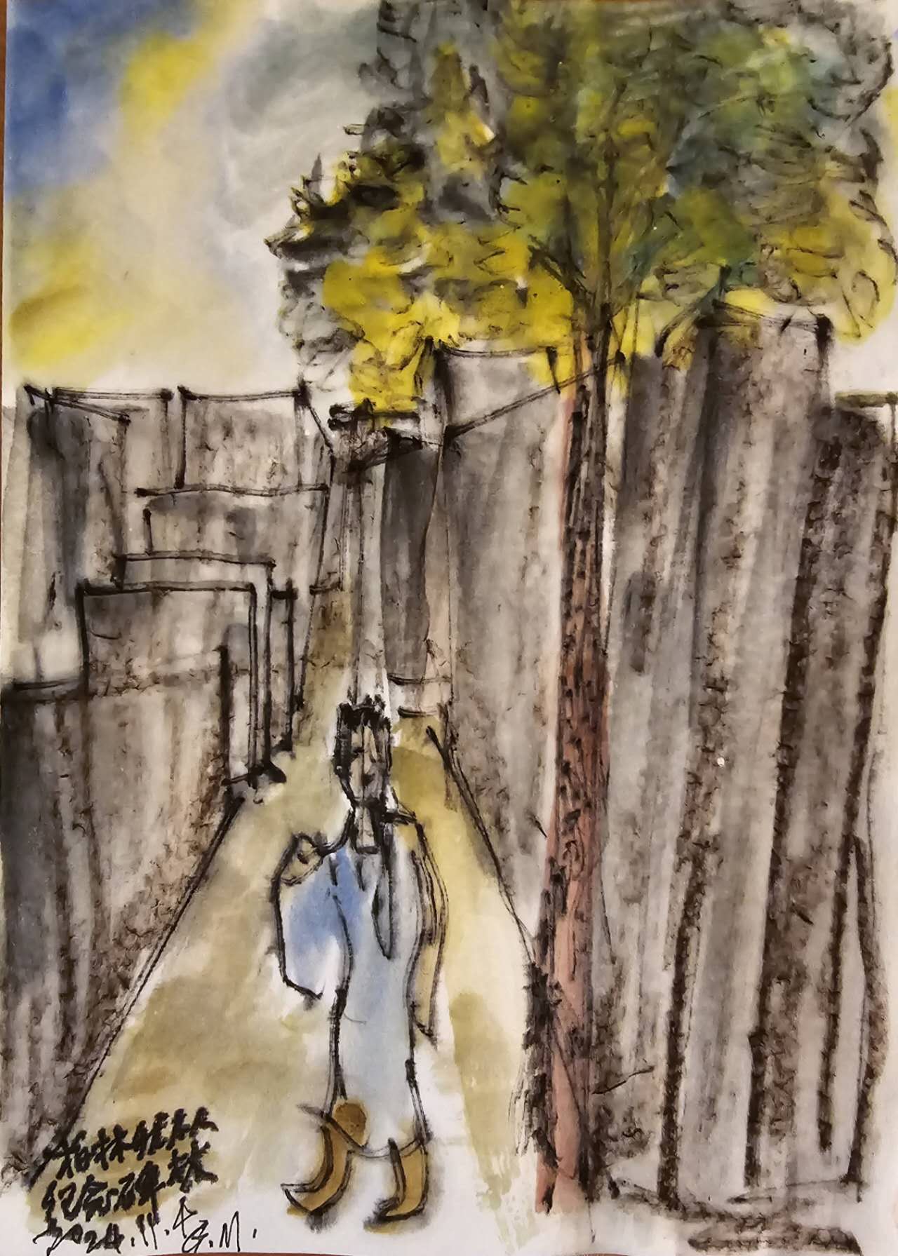 在欧洲,柏林遇害犹太纪念碑 纸本彩墨 李公明 作 2024年11月4日