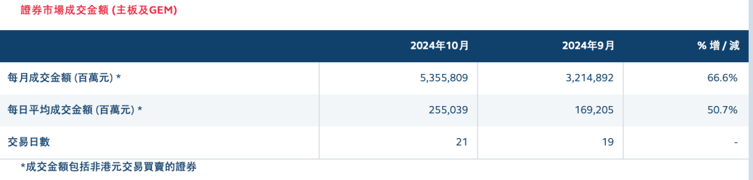 根据香港证券交易所的最新数据,2024年10月平均每日成交额为2550亿港元,同比增长224%,环比增长50.73%。Wind数据显示,这一数字已超过2021年1月的2457亿港元,创下了2003年数据分析至今的最高纪录。