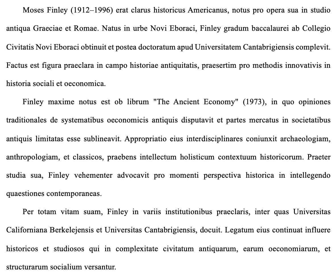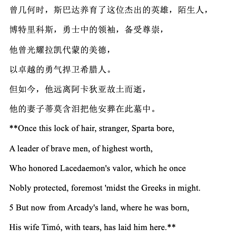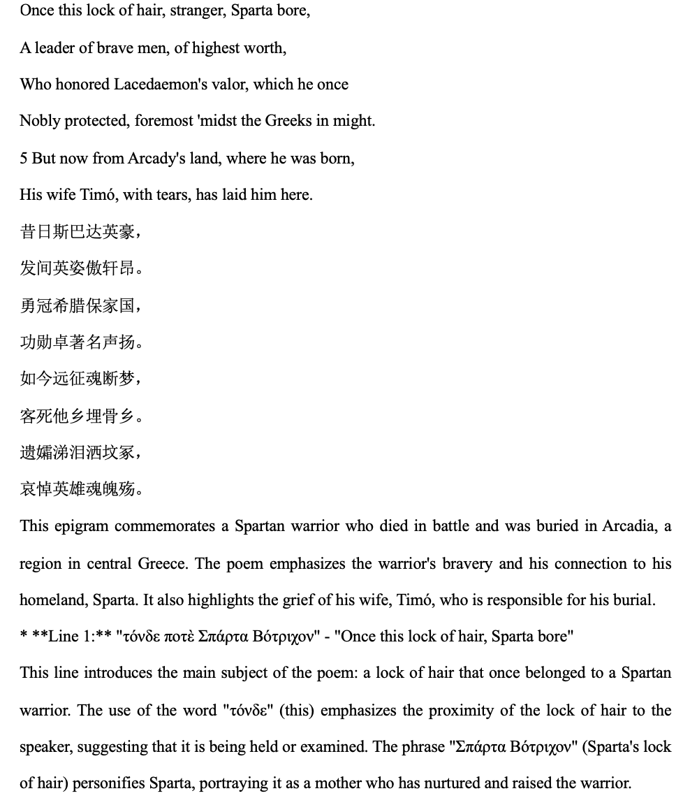 当前我国古希腊、拉丁语教学课程对古典语言的写作练习(Composition)对语言课程的需求可能不高,大多数大学的语言课程主要是阅读。古典语言写作的训练对于进一步提高语言能力也非常重要。当我们给出一个与古典学家相关的话题,要求AI进行写作练习时,GPT在收集信息的准确性和语言特征的变化方面的表现远远超过Gemini。