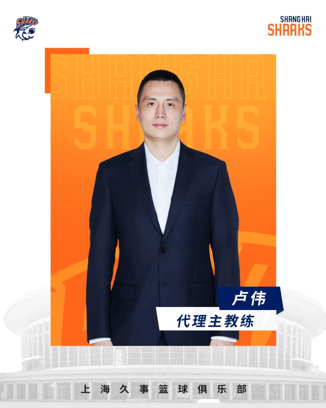 新任代理教练卢伟,1985年出生。2013-2014年和2015-2019年,他的职业生涯在上海男篮效力。