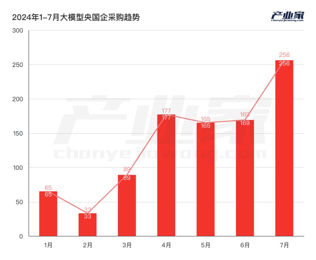 根据不完全统计,从2024年1月到7月,中央国有企业采购了950多个大型项目,在智算中心、大型预训练、Agent和应用领域均匀布局。