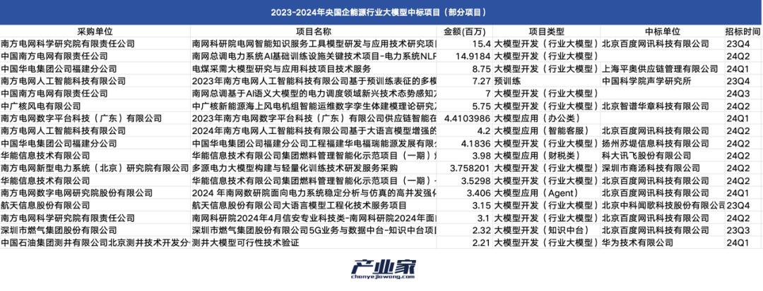 根据统计,在能源领域,2024年上半年出现了许多在预训练过程中进行某些技术研究的投标项目。
