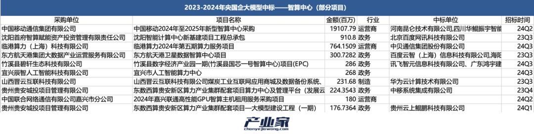 对于这样的智能计算中心采购项目,央国企已经开始铺天盖地的建设。对此,根据金额,产业家列举了近两年央国企采购智能计算中心项目金额最高的10个。