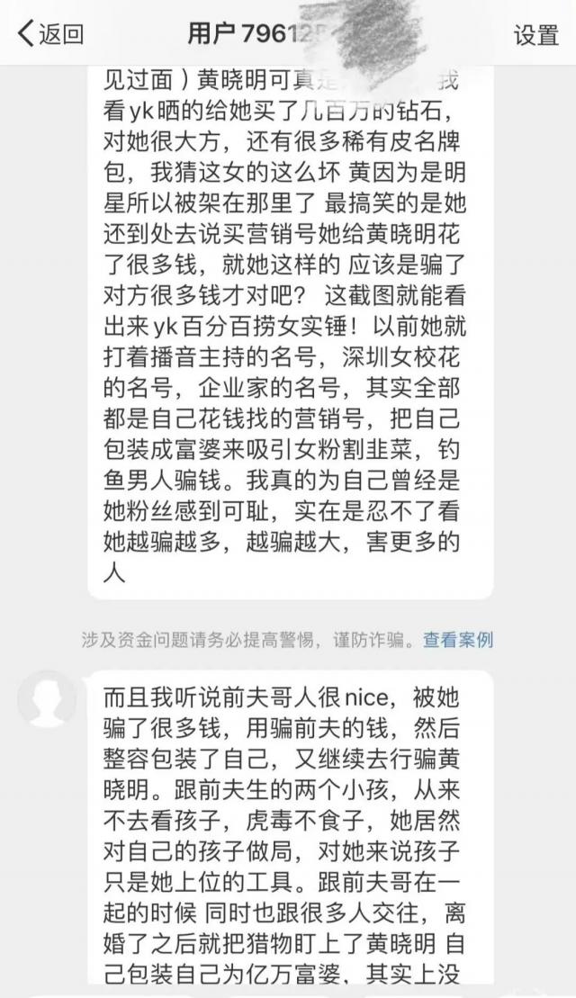 第一轮来自一位网友在社交平台上的发言,内容是黄晓明在晚宴上透露自己被叶珂骗了,因为叶珂的前夫和他的父亲给黄晓明打了电话。