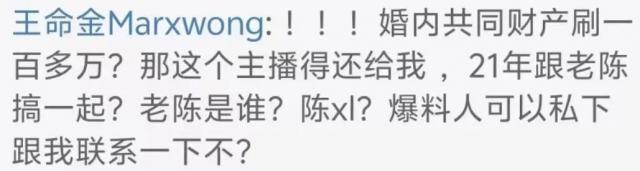 看来网爆叶珂用100多万的婚姻财产奖励主播和婚姻出轨老陈,前夫哥王命金深受感动。毕竟前者是有利可图的,后者是男人的尊严,不仅仅是因为叶珂,更是因为老陈可能是他认识的人。