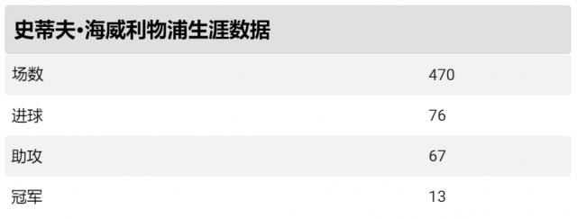 他在 470 比赛里攻进 76 球,尽管这并非世界上最伟大的记录,但是进球并非他的主要工作。史蒂夫 · 海威从侧翼切入的能力堪称典范,他是个典范。 1977 在2008年的冠军联赛决赛中,红军领先, 3-1 击败强大的德国球队门兴格拉德巴赫。在效力利物浦期间,这位边锋总共帮助球队得到了帮助。 13 这是一个重要的奖牌,包括更多 2 冠军杯冠军。