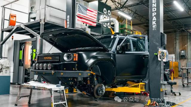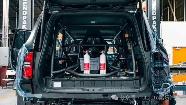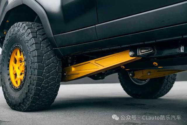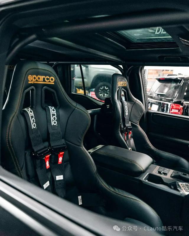 接着还安装了一套 17 英尺 Innovate Racing G700 车轮,配以金色表面处理,与车身颜色形成鲜明对比,此外还有超大尺寸的车轮。 37 英尺 Toyo Open Country NTR 沙漠车胎。