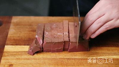 1. 将鸭血切成块,用清水冲洗两次,放入盐泡备用。