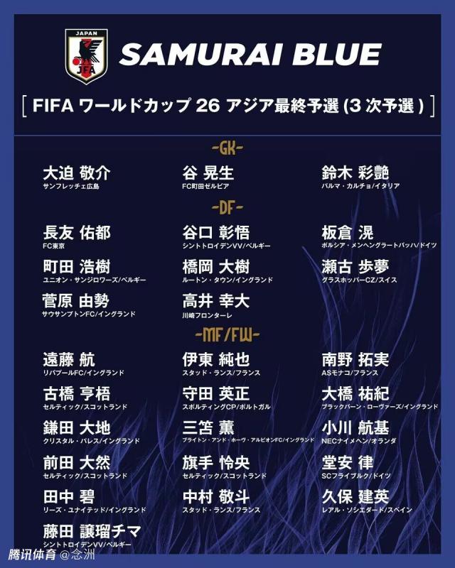 日本媒体预测了日本男子足球队对中国男子足球队的首发阵容, 11 每个人都在欧洲联赛踢球。