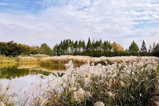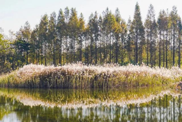 陆地上有沙子,树枝上有波浪。现在是芦苇摇曳的季节。芦苇生在水里,成片生长;秋风吹来,大芦苇随风荡漾,构成了罗泾涵养林的独特风景。