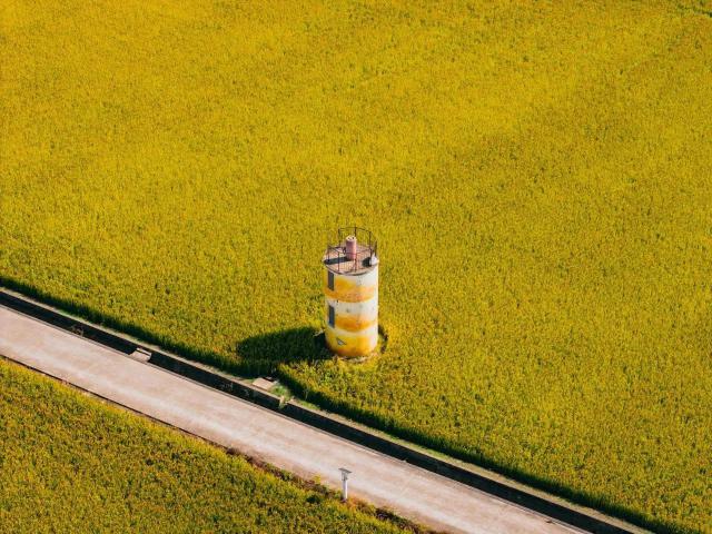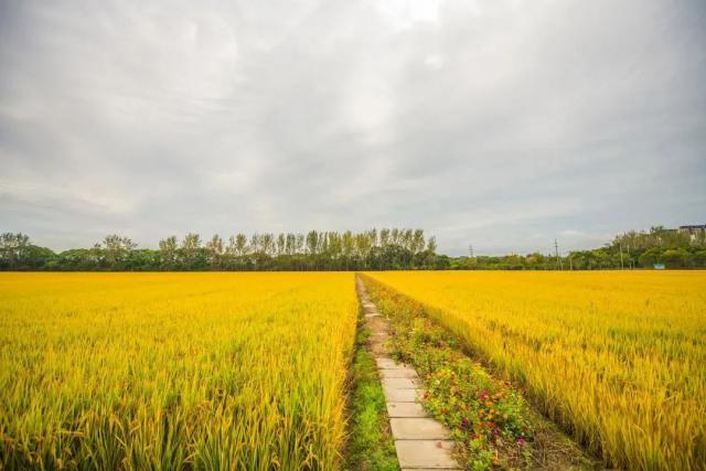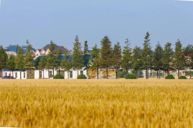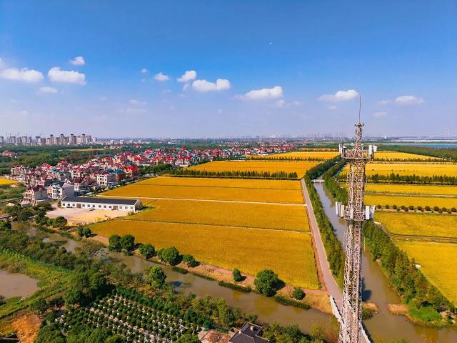 秋天,稻穗飘香。来到罗泾花红村千亩良田,看风吹稻浪,建筑纵横,满地金黄。