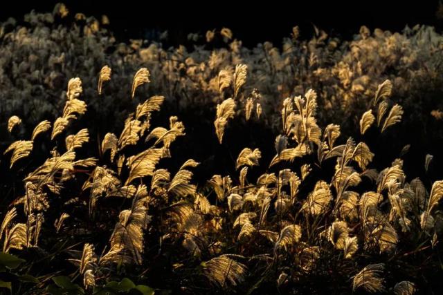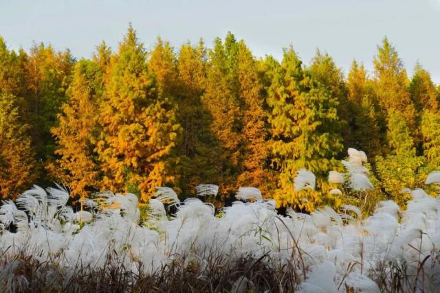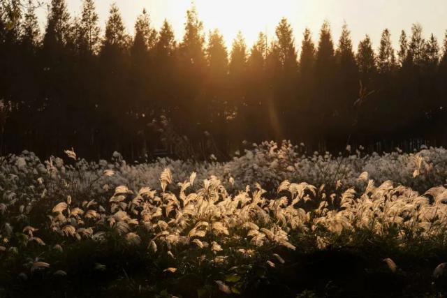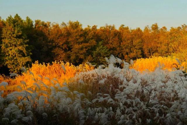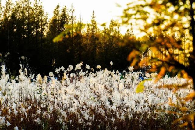 站在湖边的芦苇丛中,环顾四周,一簇簇芦苇在树木的映衬下像雪一样洁白。在阳光下,芦苇轻盈优雅,几乎透明,营造出一种充满秋天气息的感觉。