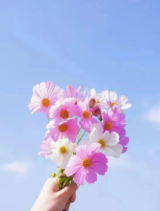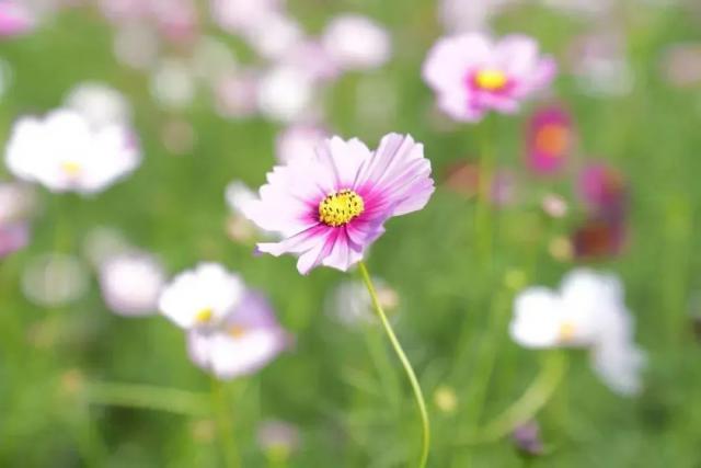 各种颜色的波斯菊菊,如白色、粉色、红色等