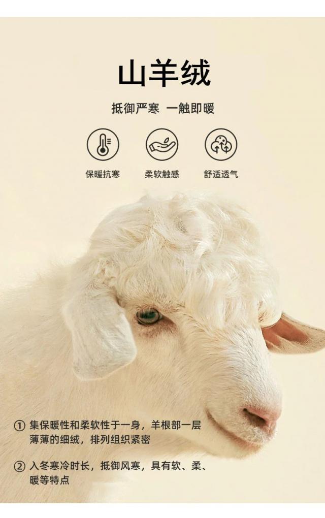 羊绒是纺织界公认的保暖材料,柔软的质地,紧密的排列,良好的抱合力, 所以保暖效果可以说是很好的。
