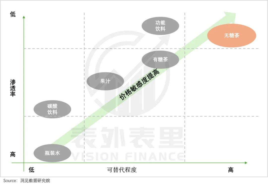 之所以如此“心口不一”,对于国内无糖茶玩家来说,降价只是乘势而上。——在热销饮料中,无糖茶是基于多种可替代产品,渗透率低,对价格的敏感度最高,降价能更快地打开市场。