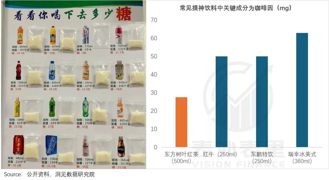 咖啡因和牛磺酸刺激中枢系统,可以提神醒脑,在“累、累、喝董鹏特饮”等广告词中写得很清楚。对于健康,往往与天然有机和无糖挂钩。