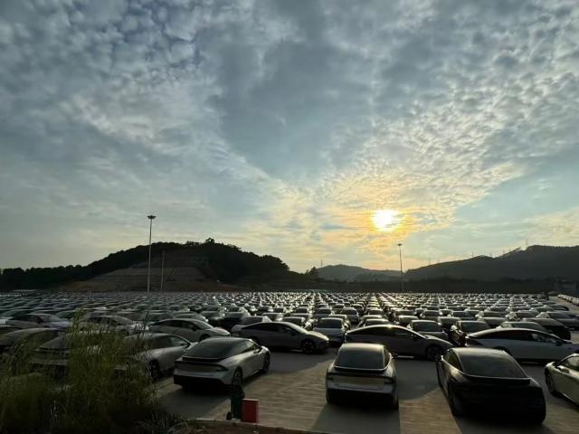 从内容中可以看出,小鹏密密麻麻,配色多样。 P7 ,位于这个新势力造车广州工厂的空地上,整齐地排除在外,伴随着即将落下的夕阳,不知为什么压迫感十足。