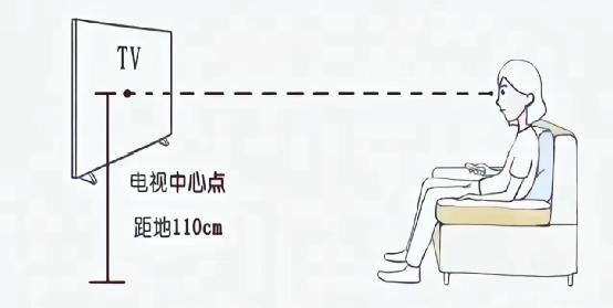 除水平距离外,还应考虑电视剧与地面的垂直距离:电视中心点与地面的距离 110cm 为宜。