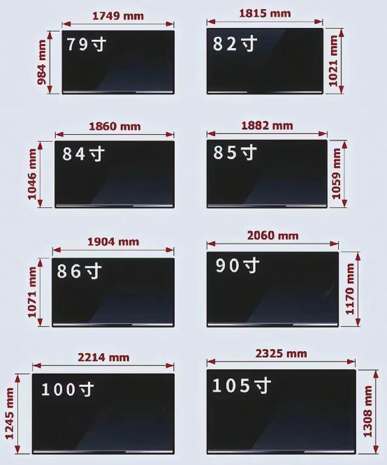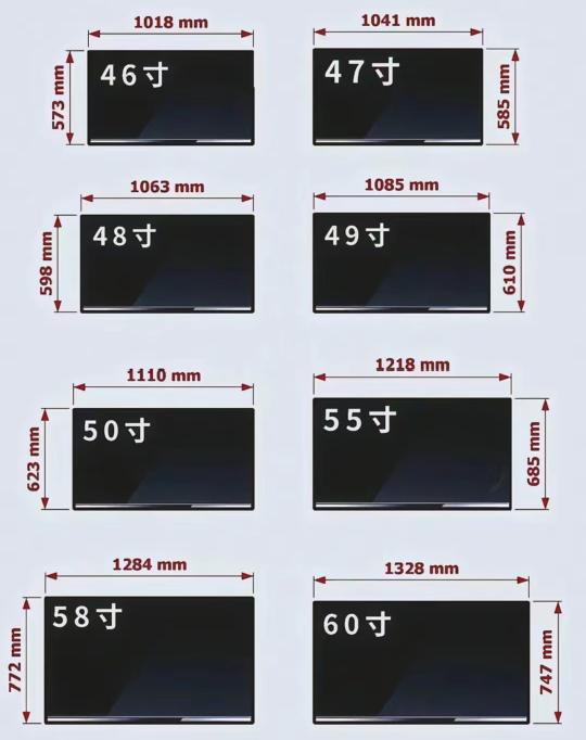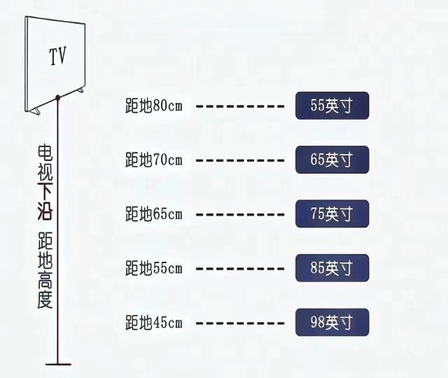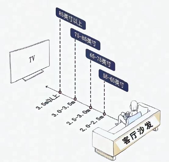 另外一张参考数值的客厅开间和电视尺寸的照片。