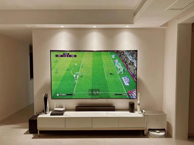 但是并非所有的起居室都适合 98 这是一台巨无霸的电视。房间太小了,你可以放一个 2.2 米饭电视,那真的成了电视怪兽。