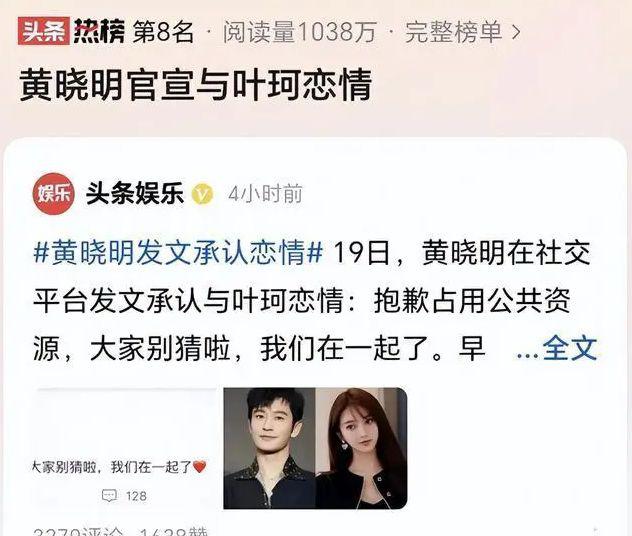 目前,黄晓明还没有删除关于官方公告恋情的帖子,这也让事件的发展充满了变数。无论如何,我们都希望当事人能尽快澄清事实,给公众一个明确的答案。毕竟真相只有一个,谣言止于智者。