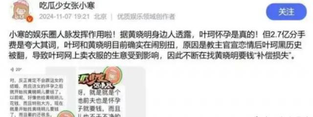 到目前为止,整个事情变得更加复杂。黄晓明和叶柯的关系在哪里?叶柯真的怀孕了吗?他们之间是否因为金钱而产生矛盾?这些问题需要当事人亲自回应。