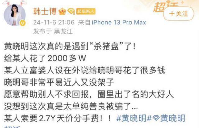 昨天娱乐圈又曝光了一个超级大瓜,主角是黄晓明和叶柯。网爆两人分手,原因是叶柯向黄晓明索取高达 2.7 一亿分手费,这个消息瞬间引爆了网络。