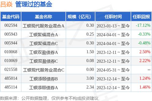 2016年中国、博士生、吕邈女性 2008年加入工银瑞信,现任研究部副总监、基金经理助理、基金经理。2023 年 1 月 13 日本是工银瑞信现代服务业灵活配置混合型证券投资基金的主管。2023 年 12 月 11 日本担任工银瑞信双盈债券型证券投资基金主管。2023 年 12 月 14 日起担任工银瑞信加颐债券型证券投资基金主管。2024 年 4 月 1 日本担任工银瑞信聚福混合证券投资基金主管。2024 年 8 月 14 工银瑞信平衡收益日起工作。 6 持有期债券型证券投资基金基金经理个月。